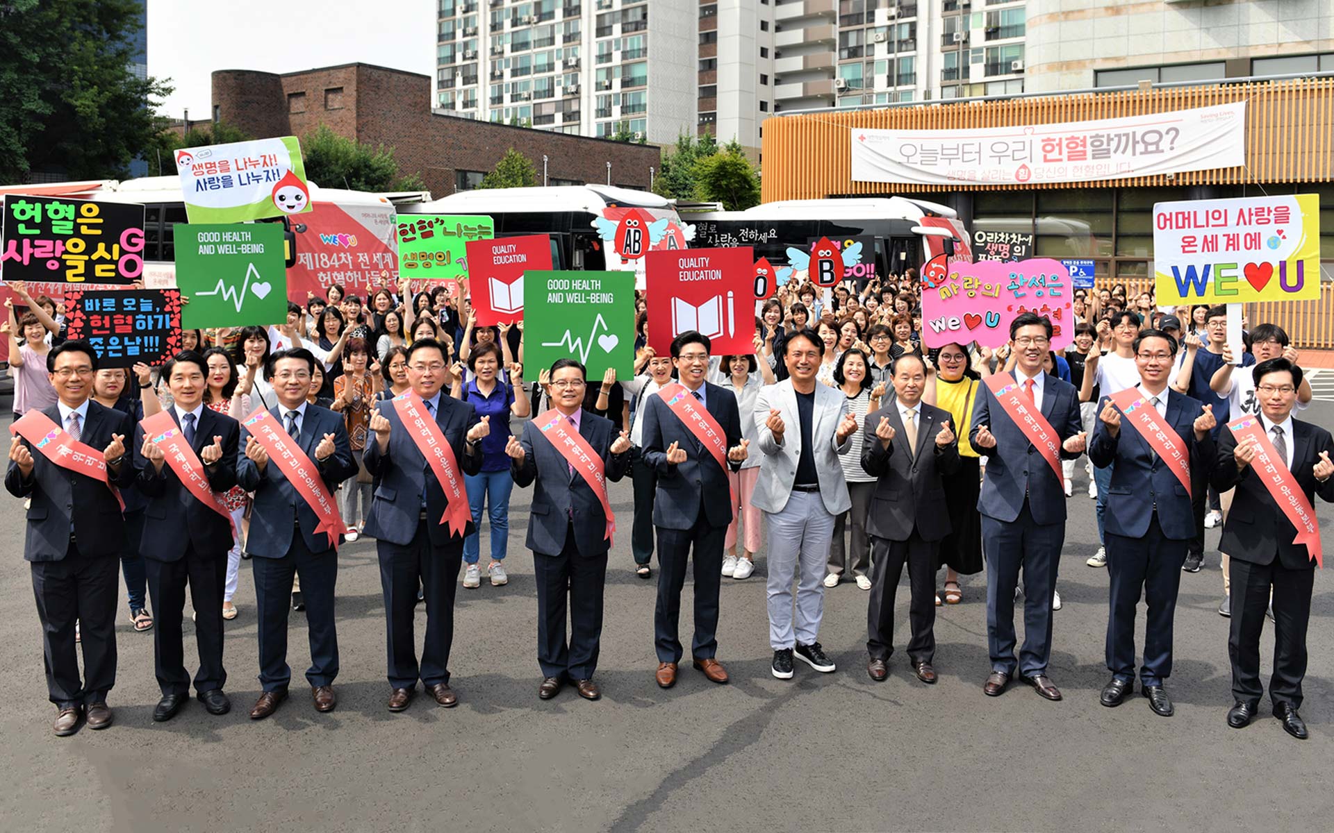 Blood is needed in all countries. WeLoveU implements a sign up campaign for the ‘Saving Lives’ urging all countries to attain VNRBD and participate in the One-Two Blood Drive. By signing the pledge, you are making a promise to bear a civic responsibility to save people whose lives are at risk due to blood shortages. We make a brighter future through a global joint action which we can practice “right now, right here.”