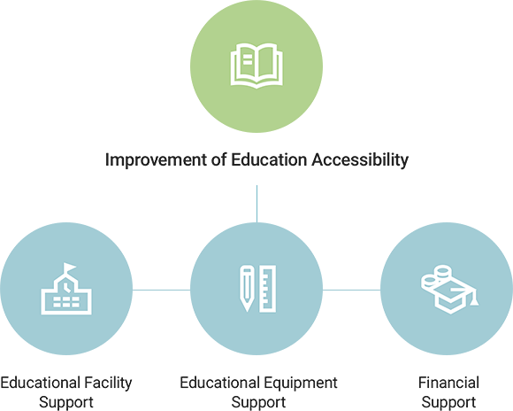 With the aim to offer an inclusive, equitable and quality education to children, adolescents and young adults who are leaders of the future global community, we offer diverse aid programs such as scholarships, construction and improvement of school facilities, and provision of school equipments and supplies. On top of that, we carry out educational programs to help them foster good character and values, and fulfill their role as a member of society by actively engaging in communication with others including their families and others.
