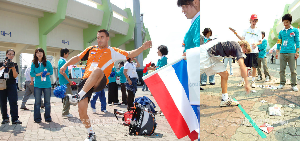 Aunque el soft tenis tiene un campeonato mundial, es lo que se llama, un deporte poco popular y existe una gran discrepancia de capacidad entre los países. Por eso era posible que los equipos que fuesen eliminados primero en el juego pudieran desilusionarse y regresar a su patria. Sin embargo, en este campeonato, los atletas que habían perdido los juegos y estaban desanimados, volvieron a sonreir y se divirtieron como si disfrutaran de un festival con los vítores y ovaciones de los miembres de la fundación. Monica Almasy, la entrenadora del equipo suizo, dijo: “Siento mucha familiaridad con Corea y los coreanos. Parece que estuviera en Suiza”. La entrenadora de la selección alemana, Annette Decker, expresó con una gran sonrisa: “Ustedes son personas muy acogedoras. Me siento muy conmovida”.