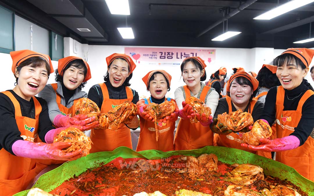 Carefully selecting ingredients for the kimchi stuffing, members lovingly mixed and made traditional kimchi with their own hands. Its rich, spicy, and crunchy taste will providea comforting winter meal for many households.