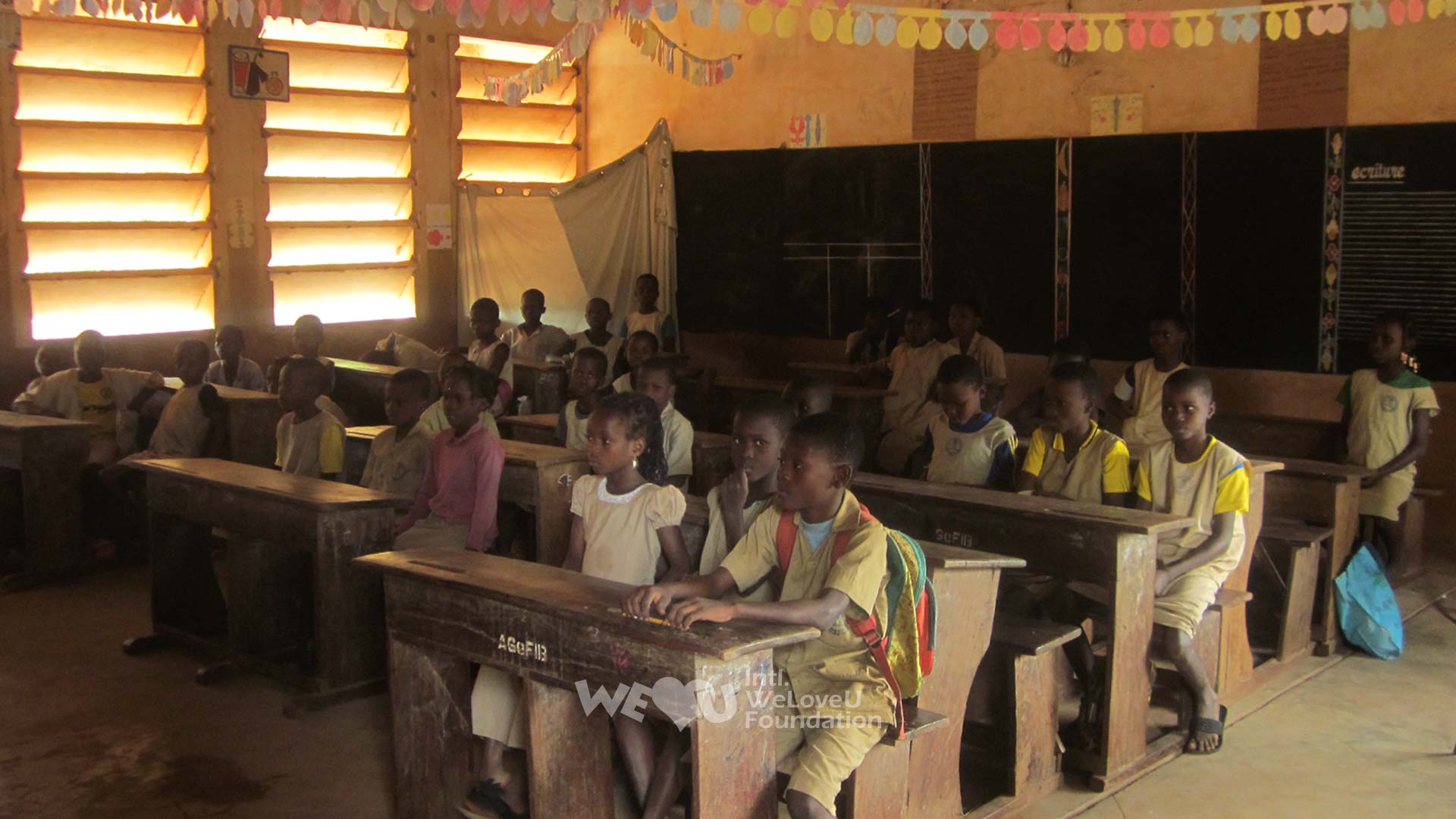 Después de conocer la situación, la Fundación Internacional WeLoveU decidió colocar instalaciones de electricidad con energía solar en la escuela; además decidió proporcionar útiles escolares para los niños que no podían permitirse mochilas ni útiles.