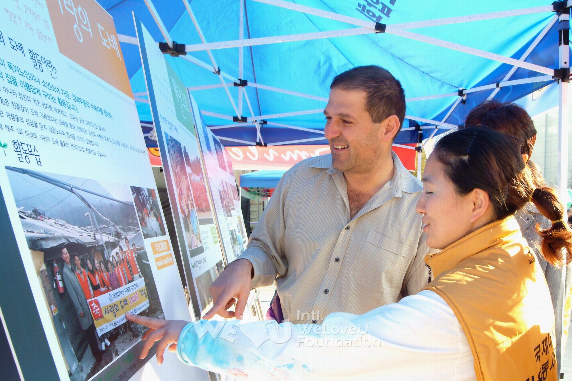 Mientras se realizaba la donación de sangre, los voluntarios de la Asociación Internacional de Universitarios para el Movimiento Medioambiental (Daejayon) tomaron fotografías a los donantes y a su familia, y les elaboraron “botones de sonrisa”. Además, ofrecieron pequeños programas como pintura facial y actuaciones a los solicitantes. Cada representación se mostró tres veces en el escenario. Una era un drama corto titulado “Con nuestro poder”, cuyo tema enfatizaba que nuestra pequeña preocupación es capaz de cambiar el mundo; la otra era una historia corta titulada “La donación de sangre es amor”, que destacó la importancia de la donación de sangre con buen humor; y la última fue un baile rítmico y un coro.