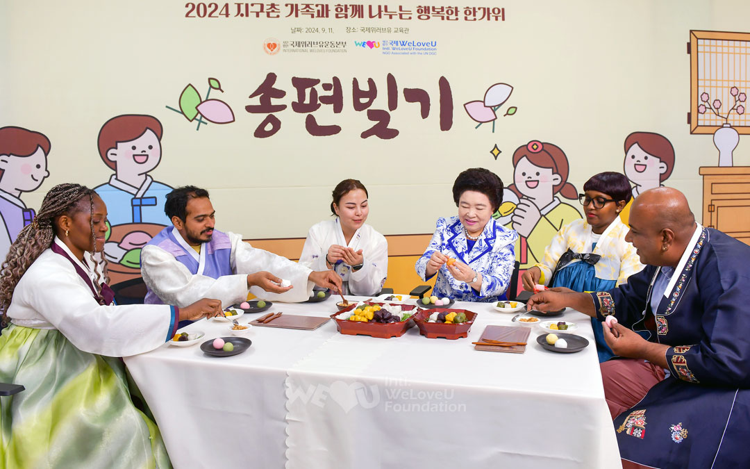El 11 de septiembre, justo antes de la festividad del Chuseok, el Centro de Educación de WeLoveU de Seongnam, Corea, organizó el evento Feliz Chuseok 2024 con Nuestra Familia Global. A la reunión asistieron la Presidenta Honoraria Zahng Gil-jah, los directivos de WeLoveU y Yi Bae-keun, presidente de la Asociación Coreana para la Prevención del Abuso Infantil, junto con diplomáticos de Mongolia, Nepal, Perú, Irak y otras naciones. Asistieron unos 180 participantes, entre familias multiculturales y estudiantes internacionales de 20 países como Mongolia, Filipinas, Nepal, Laos, Sri Lanka, Irak, Uzbekistán, Estados Unidos, Perú, Kenia y Sierra Leona.