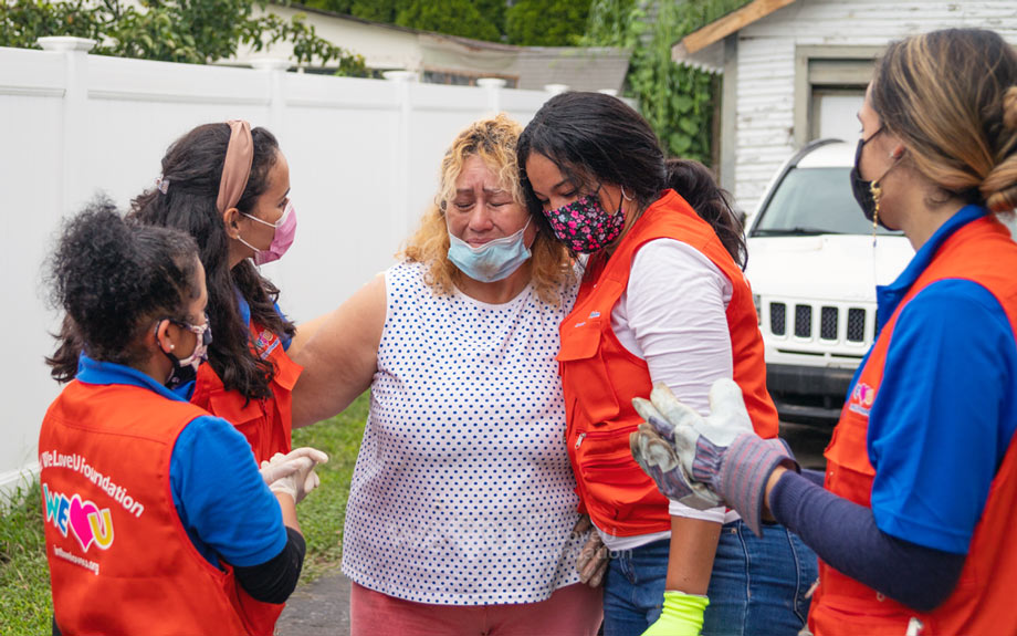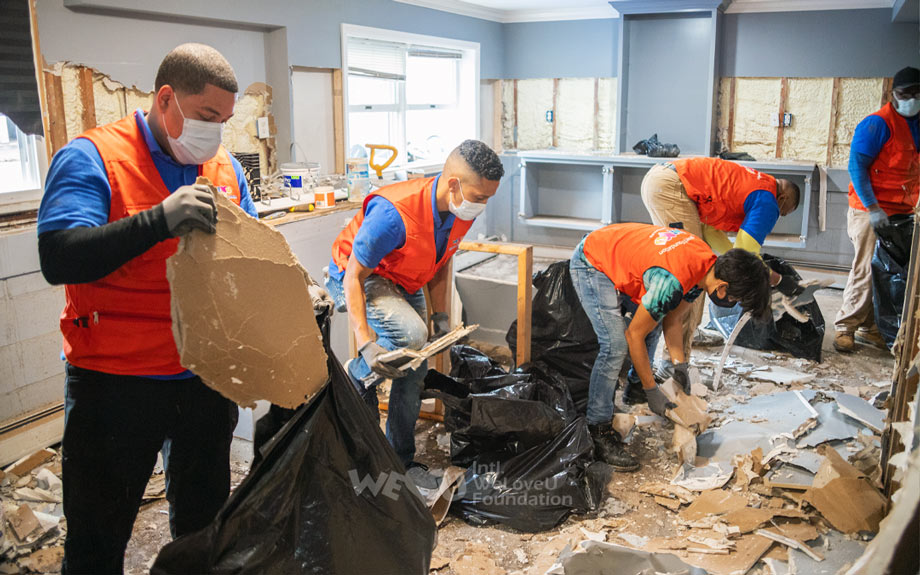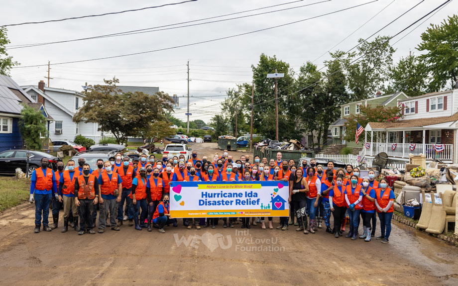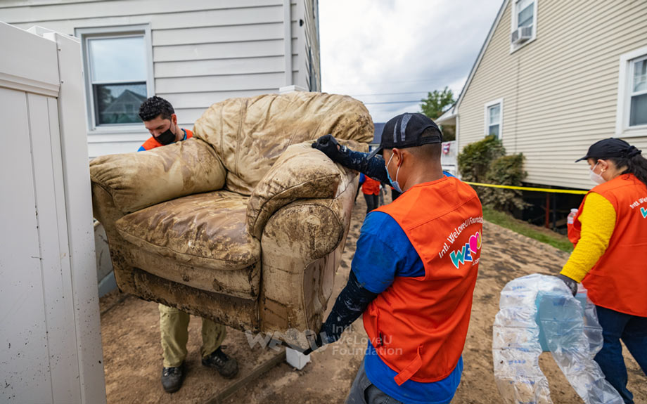 Las casas en Little Falls, Nueva Jersey, se veían horribles después de que el huracán las azotara. Los muebles y las paredes dentro de las casas estaban cubiertas de suciedad y basura que entraba en ellas debido a las fuertes lluvias; los enseres domésticos estaban todos rotos. Como no había nadie para limpiar el desorden, incluso los artículos que se podían lavar o secar estaban tirados en las casas. Mientras todos los damnificados suspiraban sin hallar medidas que pudieran tomar, más de 140 miembros de la sucursal del Este de EE. UU. de la Fundación Internacional WeLoveU llegaron a Little Falls con utensilios de limpieza el 5 de septiembre. En realidad, los residentes de Little Falls sufrieron daños similares por un huracán en 2018, y la fundación ayudó con la reparación de casas en aquel entonces. Recordando los sinceros esfuerzos de recuperación de la Fundación Internacional WeLoveU, solicitaron su ayuda primero.