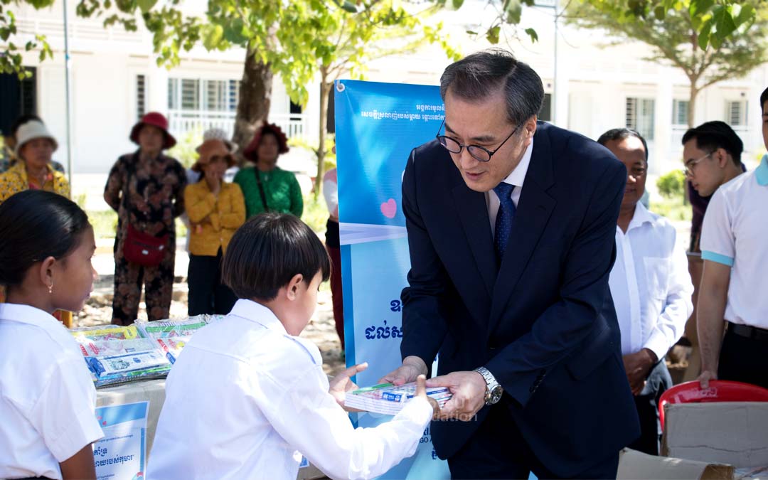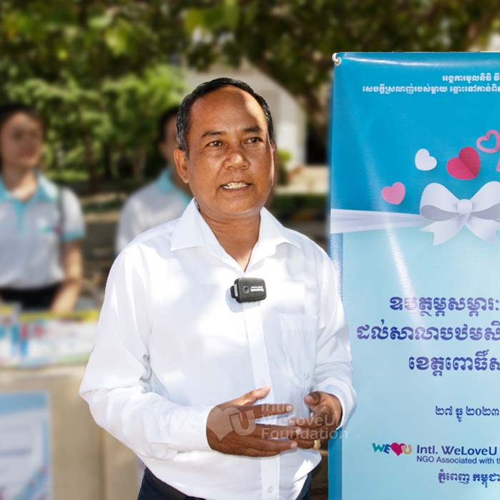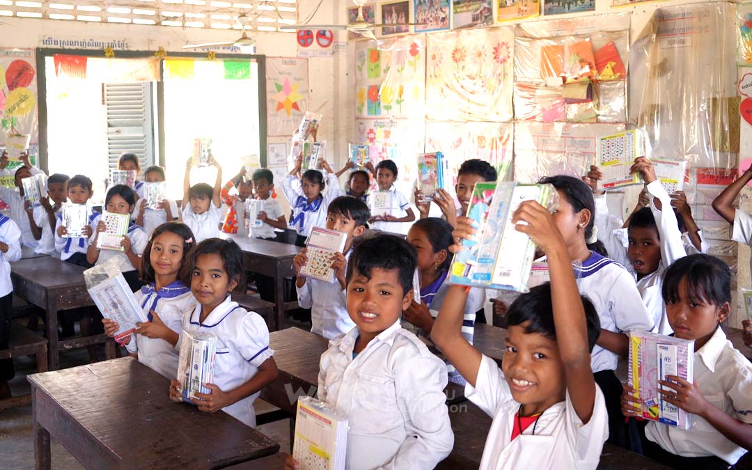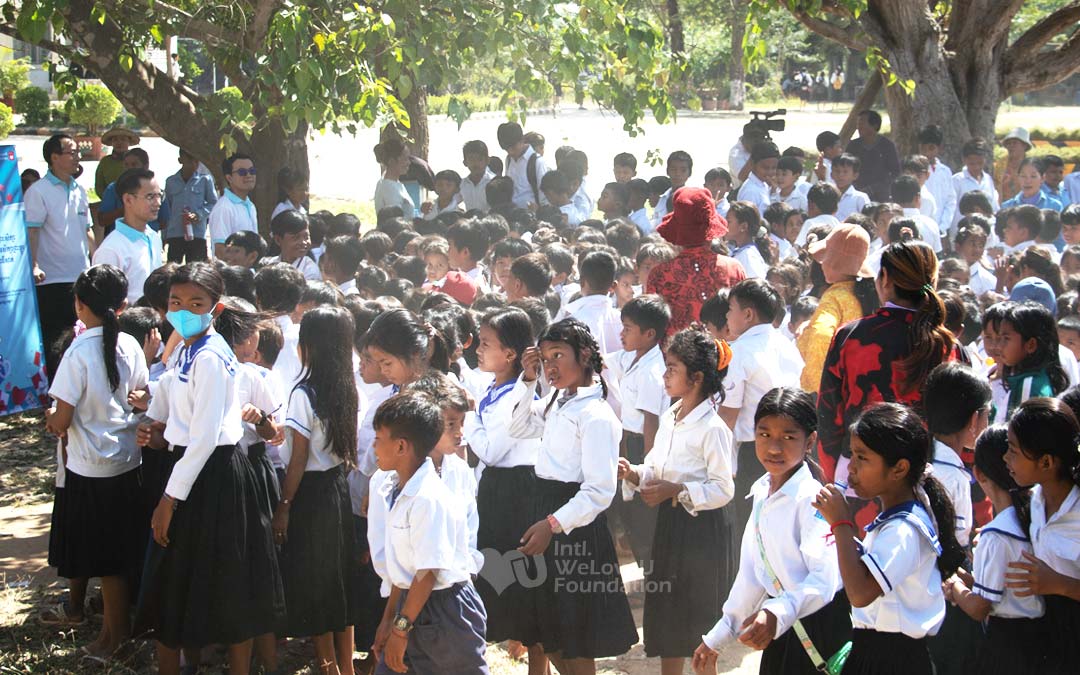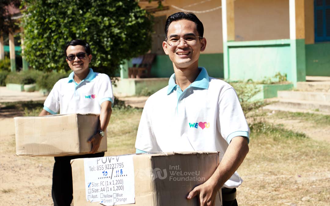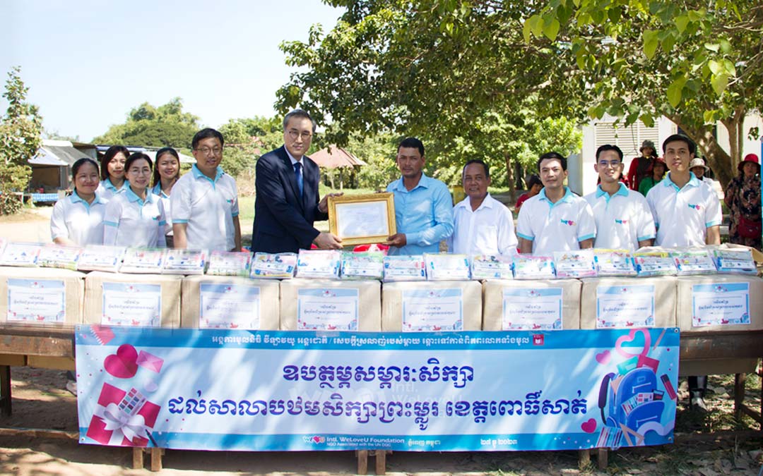 La escuela está situada a las afueras de la ciudad de Pursat, a cuatro horas en automóvil de la capital Nom Pen. Al conocer la noticia según la cual muchos estudiantes no pueden permitirse ni siquiera el material básico de escritura, WeLoveU preparó 500 juegos de útiles escolares esenciales como cuadernos, lápices, estuches y sacapuntas, y los entregó a los estudiantes.