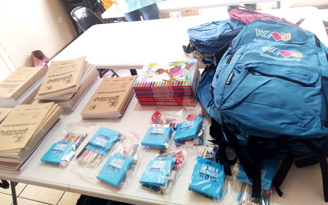 Para ayudar a los niños fuera de la escuela a acercarse al aprendizaje dondequiera que estén, WeLoveU decidió proporcionar suministros educativos. Prepararon rápidamente artículos esenciales como cuadernos, lápices, acapuntas, borradores, lápices de colores, crayones y mochilas escolares decoradas con el logo de WeLoveU.