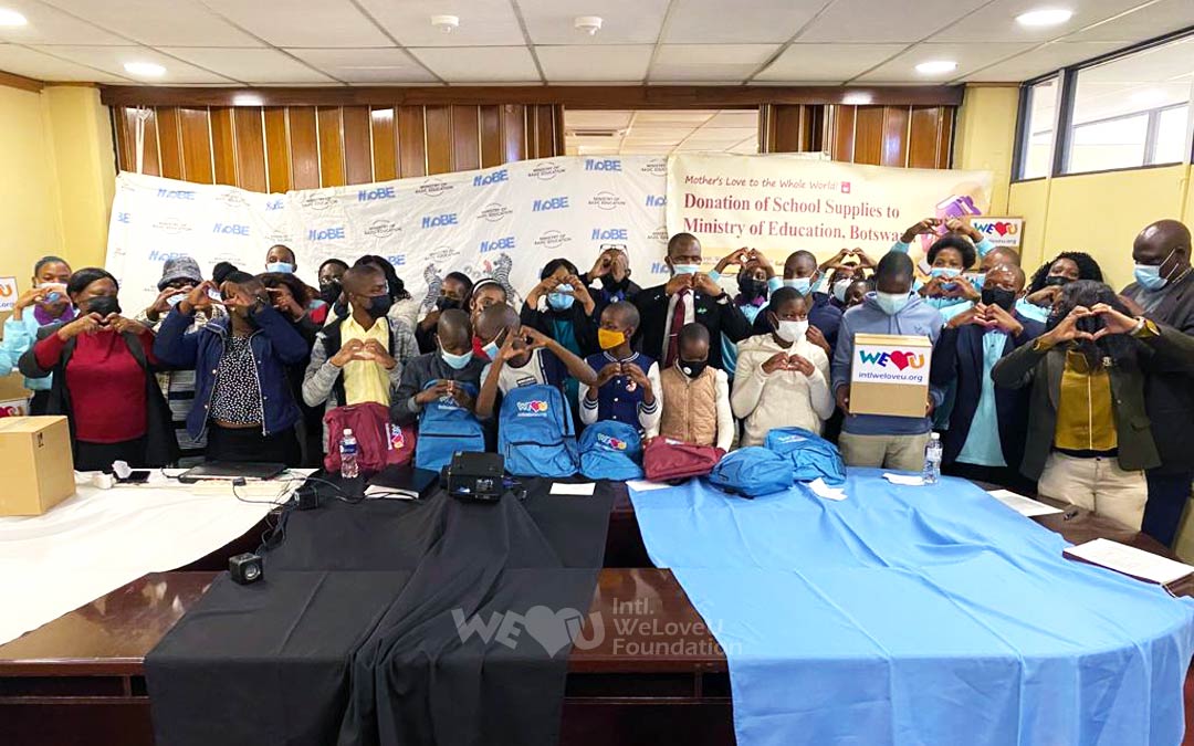 El 27 de julio, se celebró una ceremonia de donación en el Ministerio de Educación y Desarrollo de Habilidades en Gaborone. Cuando los miembros de WeLoveU exclamaron, «We Love You», los niños y padres respondieron con entusiasmo, «We Love You!» Ese día, 70 niños recibieron mochilas escolares y suministros.