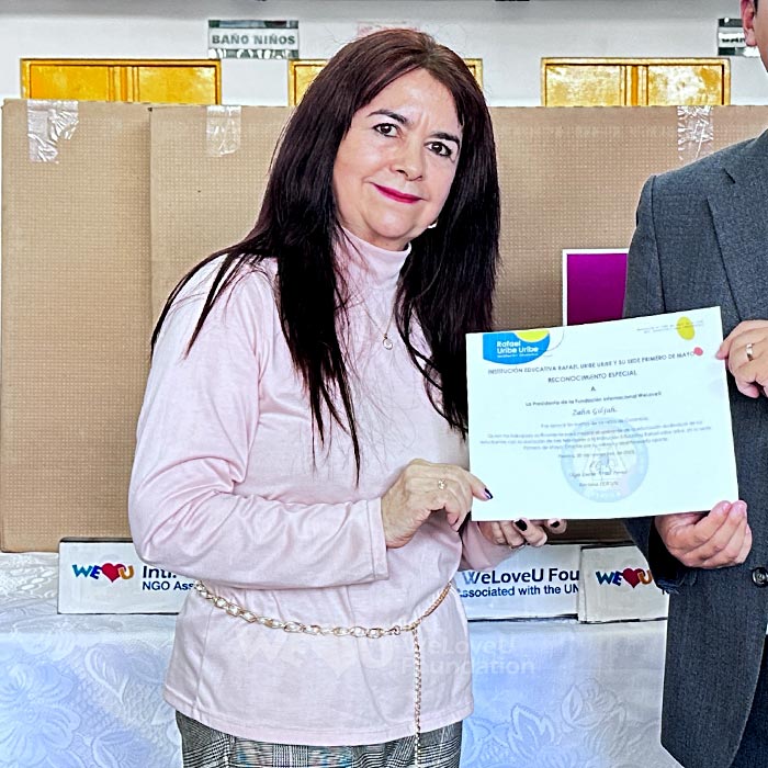 “Quiero agradecer a la Presidenta Honoraria Zahng Gil-jah por proporcionarnos dispositivos audiovisuales que nuestros niños pueden usar. Espero una mayor cooperación con organizaciones como WeLoveU para un mejor futuro de los estudiantes”.