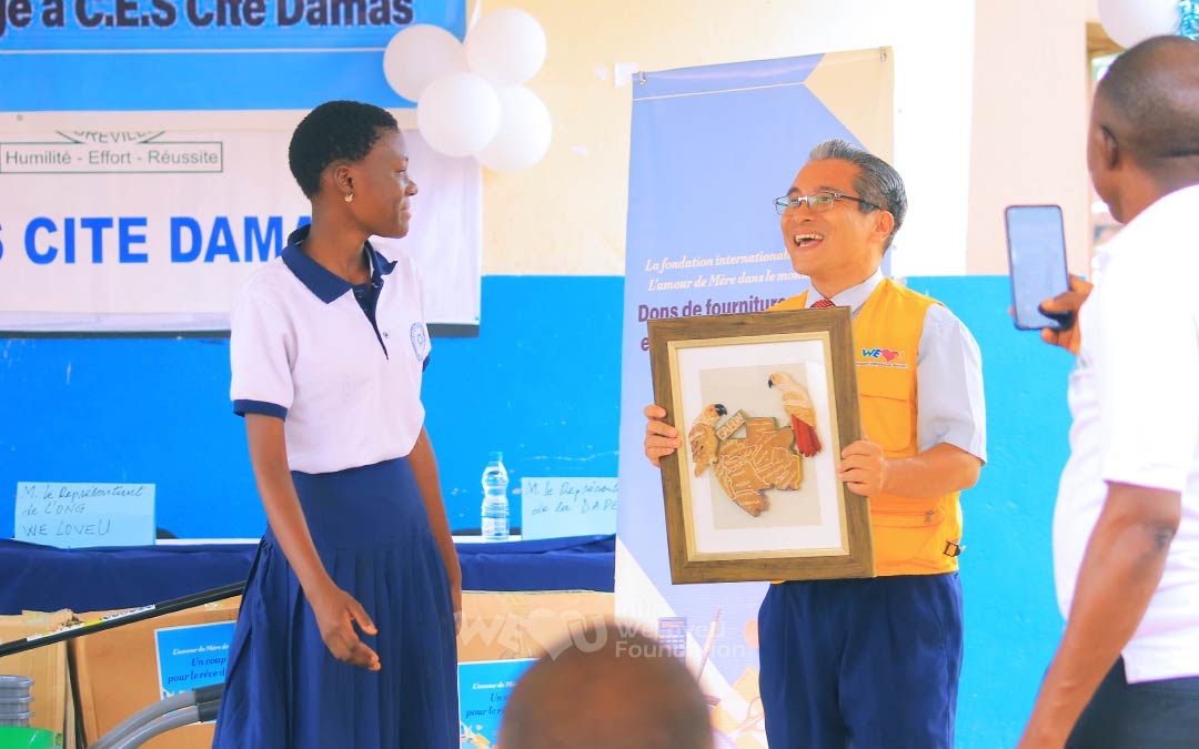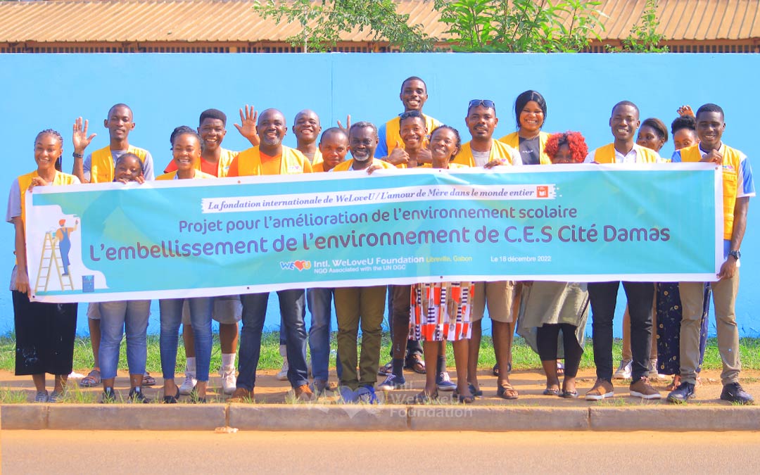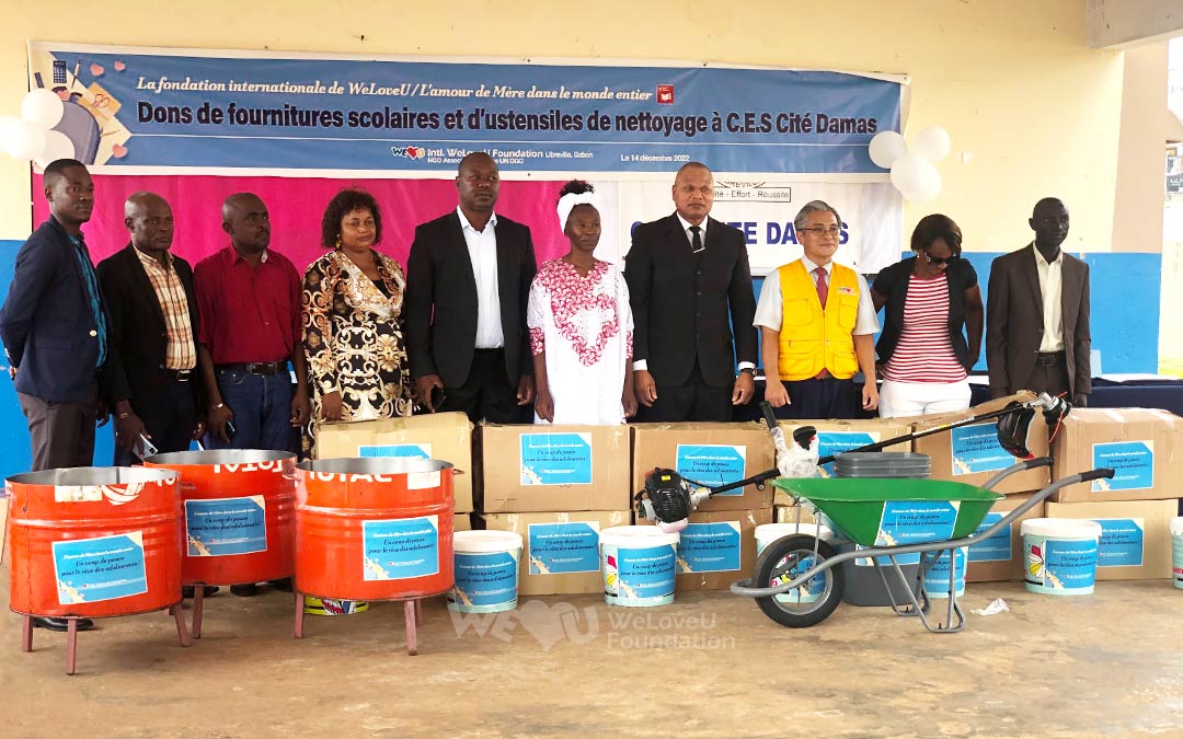 Los miembros de WeLoveU hablaron con la Oficina de Educación de Libreville y donaron más de 60 unidades de utensilios de limpieza con 12 variedades, incluyendo escobas, recogedores, tachos de basura, carretas y cortadoras de césped, a la Escuela Secundaria de Damas el 14 de diciembre. WeLoveU también entregó 20 maceteros para el embellecimiento, tizas y 50 juegos de papel de tamaño A4 necesarios para las clases.