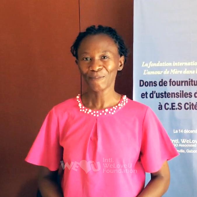 “Estoy agradecido con la presidenta Zahng Gil-jah de WeLoveU, quien tiene un verdadero precioso corazón. Soy consciente que ha estado cooperando con el presidente de Gabón y su esposa para mejorar el medio ambiente. Esperamos que la apasionada dedicación de WeLoveU y sus esfuerzos continúen en todo Gabón. Nos gustaría agradecer a WeLoveU una vez más por su donación”.