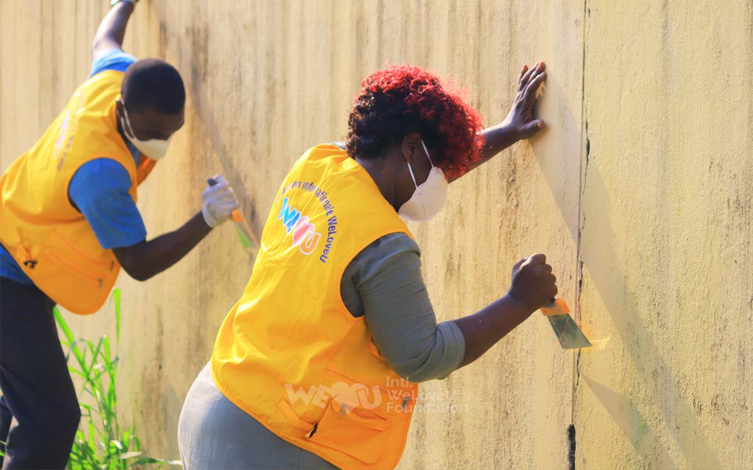 El 18 de diciembre , los miembros de WeLoveU pintaron las descoloridas paredes de la escuela para que los estudiantes pudieron estudiar en un ambiente limpio y agradable.