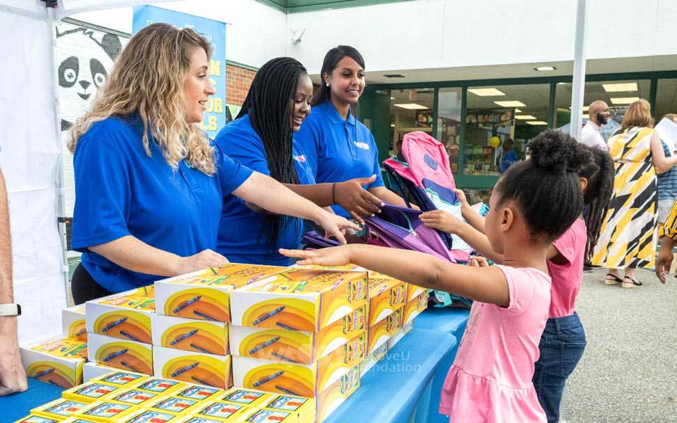Este año, del 2 de agosto al 11 de septiembre, presentaron más de 3600 mochilas y más de 3400 sets de útiles escolares esenciales, incluidos materiales de escritura, a 12 escuelas en Georgia, Nueva York, California, Delaware, Virginia, Connecticut, Colorado, Nueva Jersey y Washington D. C.