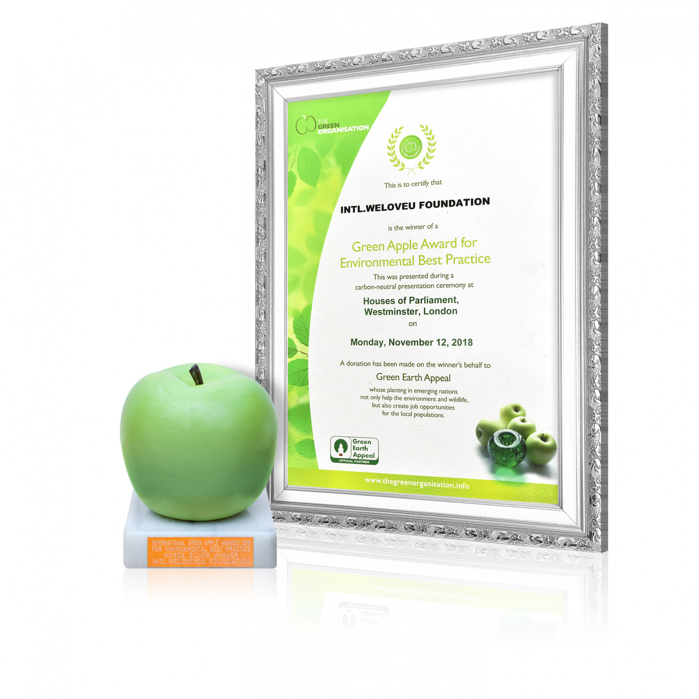 En la ceremonia de los Premios Green Apple 2018, que se llevó a cabo el 12 de noviembre en la Cámara de los Comunes, Palacio de Westminster, Londres, Reino Unido, la Fundación Internacional WeLoveU fue galardonada con el Premio de Plata en la categoría Internacional-Global.