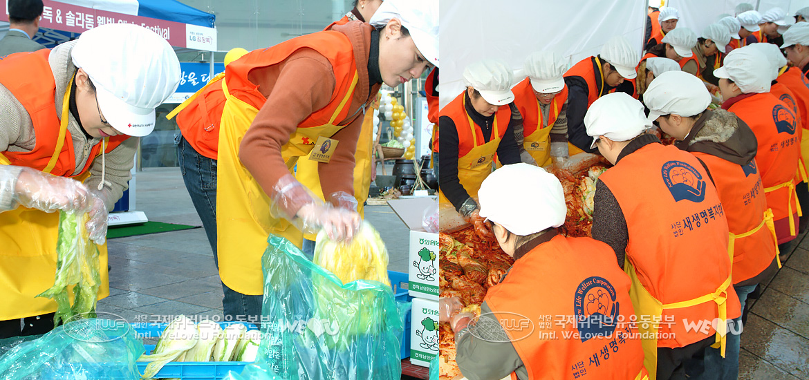 La alegría de las voluntarias amas de casa era tan grande como la de los niños; un ama de casa que preparaba kimchi por primera vez en 10 años despúes de su casamiento porque sus padres y suegros siempre le enviaban kimchi, y una experta ama de casa que preparaba kimchi durante 30 años… todas preparaban kimchi con todo su corazón, pensando en el prójimo necesitado. Algunos transeúntes incluso se detenían y degustaban un poco de kimchi o preguntaban si estaba en venta.