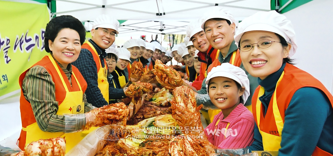 La Presidenta Zahng Gil-jah, que preparaba kimchi con los voluntarios, deseó que el prójimo tuviera valor y buena salud después de disfrutar este kimchi, diciendo: “Como estaba haciendo cada vez más frío, solo quise ayudar a nuestro prójimo necesitado, preparándoles kimchi”. Luego pidió a los miembros que tuvieran más interés por el prójimo a medida que la economía continuaba empeorando.