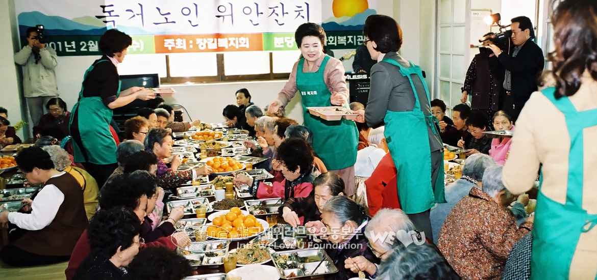Los miembros de la fundación invitaron a los ancianos al Centro de Bienestar Social Cheongsol localizado en Bundang-gu, Seongnam-si, y les sirvieron comida festiva como ogokbap (arroz con cinco clases de granos), verduras sazonadas y también les entregaron algunos regalos.
