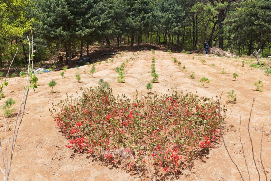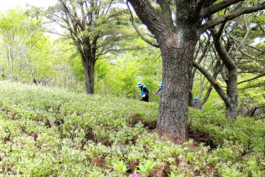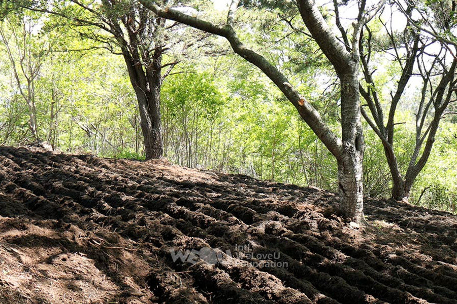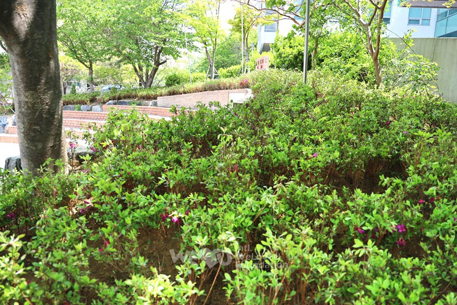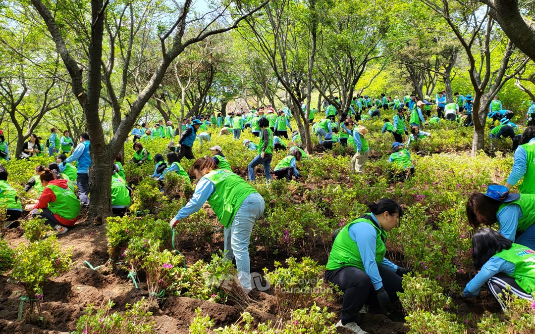 Debido a la falta de árboles alrededor de la ruta de senderismo del monte Seunghaksan, había muchos lugares que parecían vacíos. Después de conversar con la Municipalidad Distrital de Saha, WeLoveU plantó azaleas reales, que florecen entre abril y junio, e incluso creó un hermoso paisaje a lo largo de las rutas de senderismo. Después de que los miembros de la municipalidad distrital quitaron la maleza y araron la tierra, unos trescientos miembros de WeLoveU plantaron árboles.