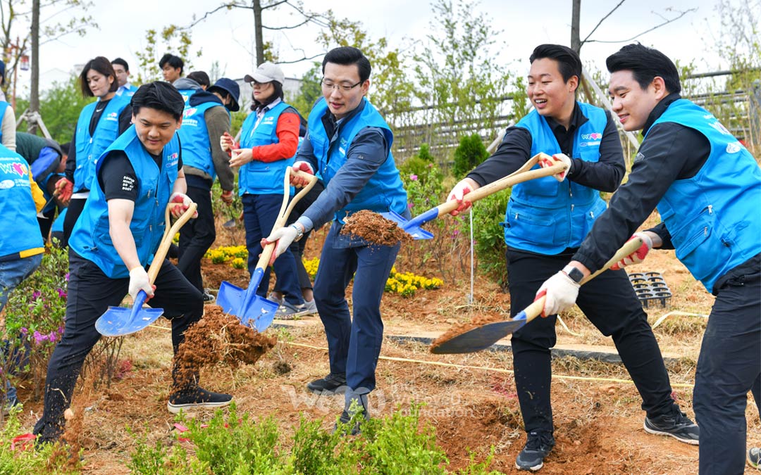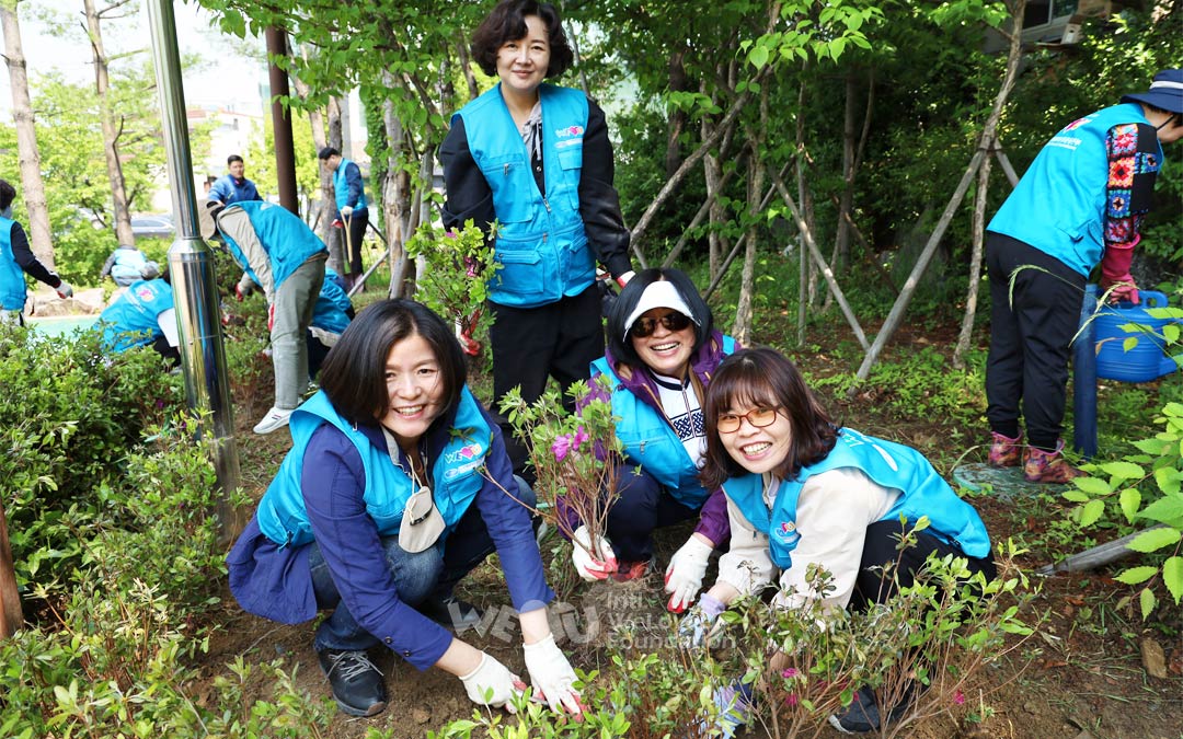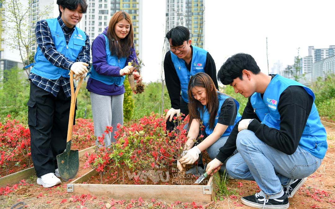 La tasa de bosque en Pyeongtaek es considerablemente más baja que el promedio nacional. Además, las islas de calor urbanas se producen con frecuencia debido al rápido crecimiento demográfico a medida que se construyen nuevas ciudades y complejos industriales. La ciudad de Pyeongtaek está haciendo todo lo posible para crear un bosque urbano con la participación de empresas y residentes. Los miembros de WeLoveU en Osan, Hwaseong, Anseong y Pyeongtaek participaron en la campaña y plantaron diversas flores y árboles en el jardín forestal en la ciudad de bienestar de Seobu. Se ha completado el parque WeLoveU con forma de corazón.
