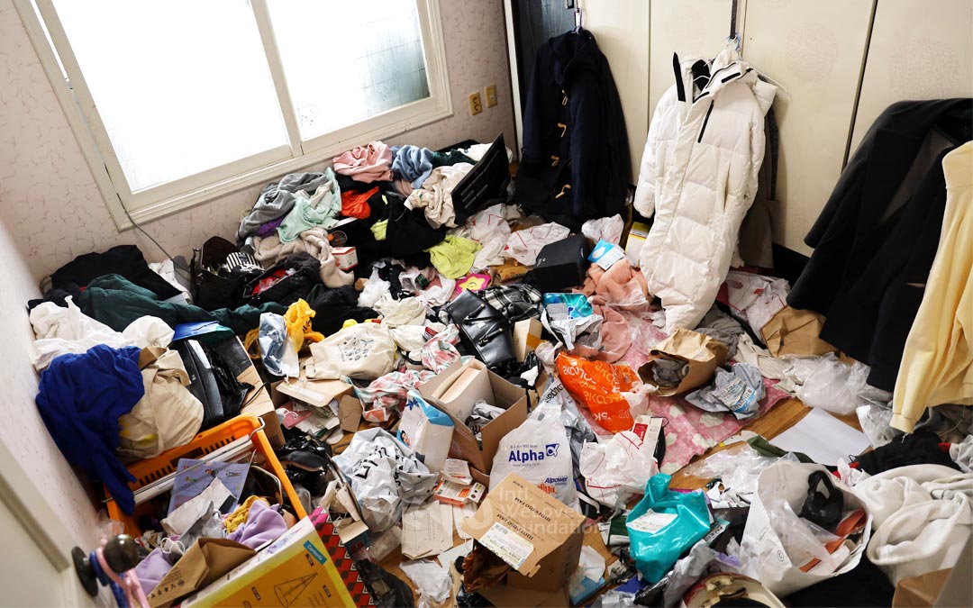 Limpiaron la desordenada casa y ordenaron la basura apilada para reciclarla.
