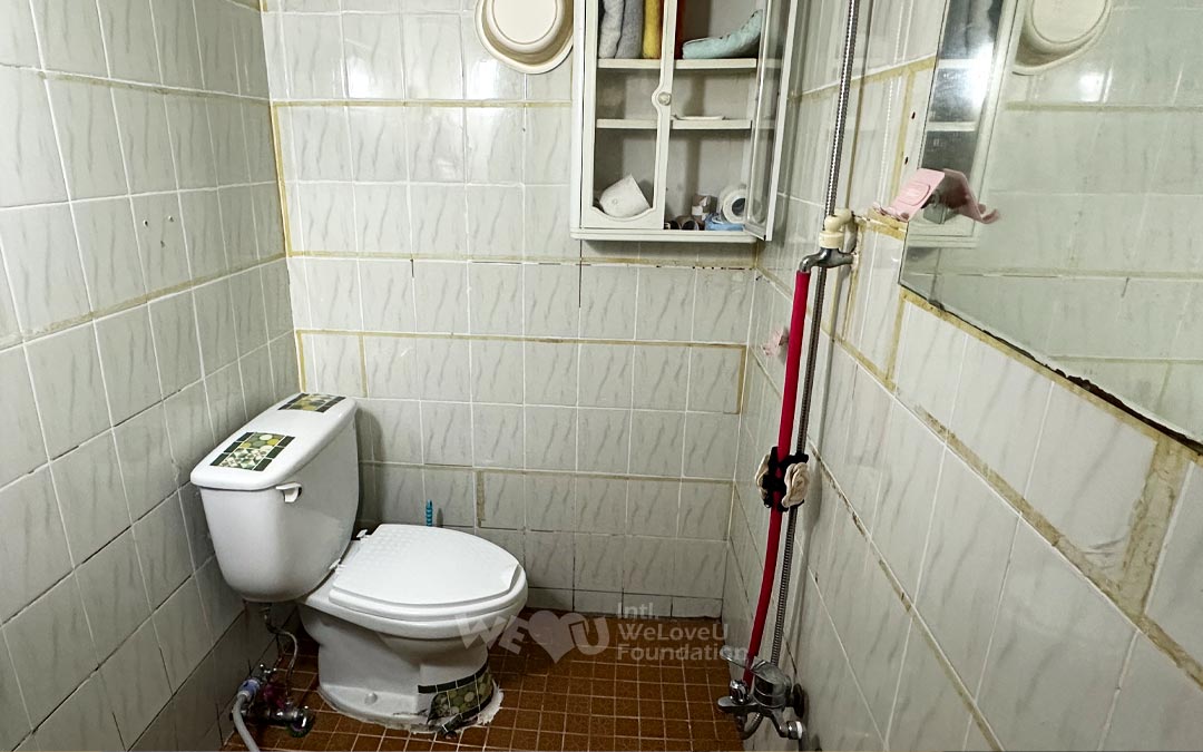 Una madre que no podía trabajar debido a una enfermedad no había podido arreglar el viejo baño. Existía el riesgo de que se cayeran los azulejos del baño, que estaban corroídos, y el inodoro estaba roto, lo que requirió una reparación integral.