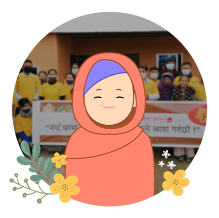 Había una casa de barro en ruinas en Kanchan, Rupandehi, Nepal. Era la casa de Chandrakala Bhattachan, que cuida a su madre anciana, su hermano mayor con discapacidad física y su hijo estudiante de primaria. La casa destartalada incluso fue azotada por lluvias torrenciales en la última temporada de lluvias, por lo que se hicieron muchos agujeros en todas partes.