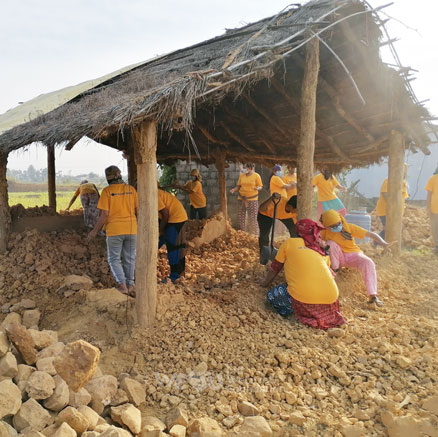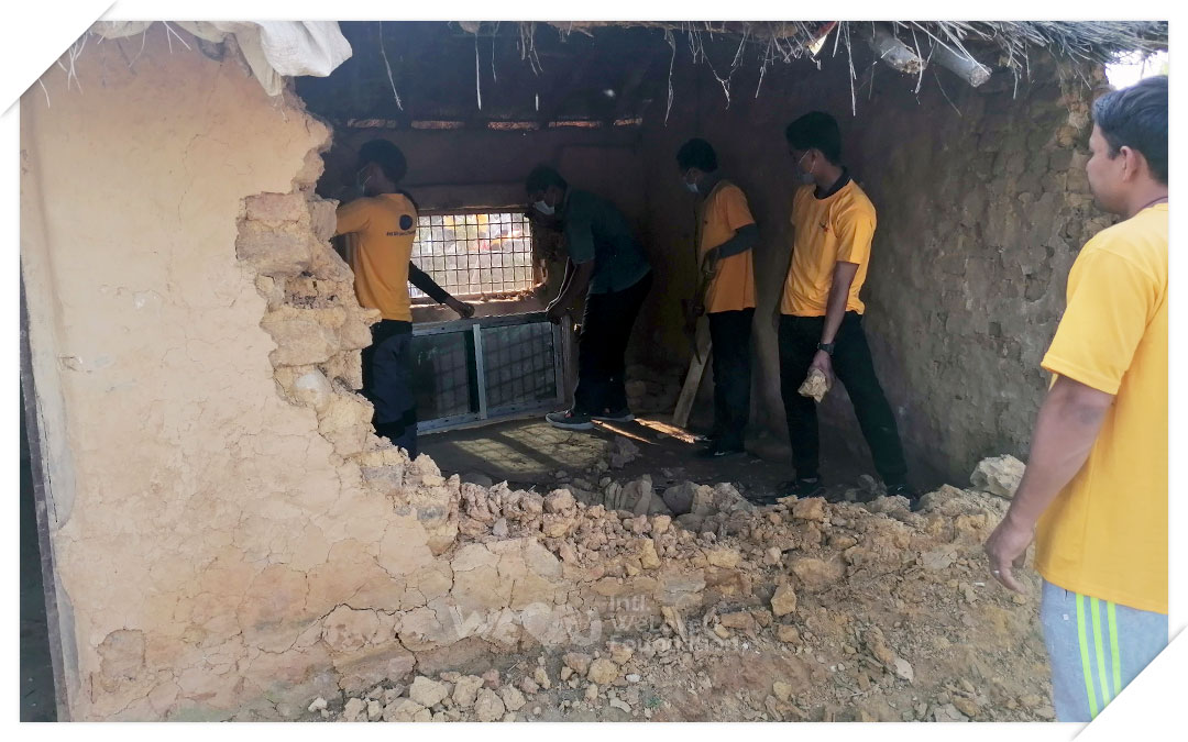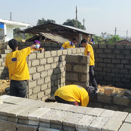 Paredes, techo y puertas… nada quedó intacto. Al ver esta lamentable situación, los miembros de WeLoveU planearon la construcción de inmediato. Durante aproximadamente un mes, más de 150 miembros se turnaron para ayudar con la construcción. El Municipio Rural de Kanchan se mostró complacido con la ayuda de WeLoveU y apoyó con algunos gastos.