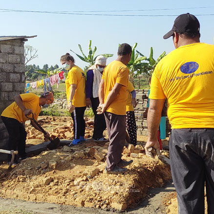 Con la esperanza de que la familia de Bhattachan pudiera ocupar la nueva casa lo antes posible, los miembros de WeLoveU continuaron la construcción incluso de noche, con linternas en las manos.