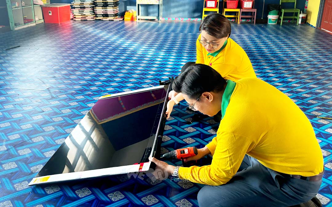 Cuando se instaló un televisor grande en la escuela, los niños estaban encantados. Dieron a los miembros de WeLoveU un pulgar hacia arriba, diciendo orgullosamente: “¡Nuestra escuela ahora tiene una sala audiovisual!”.
