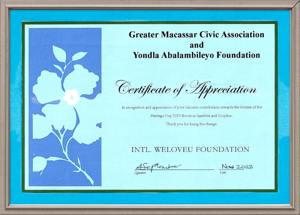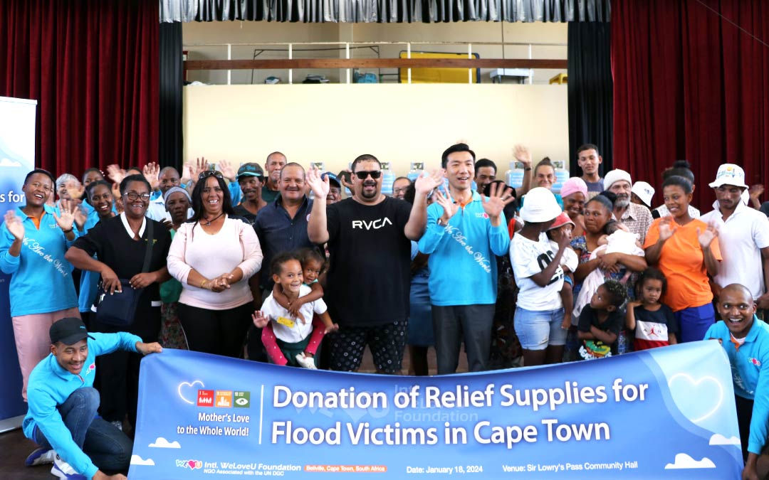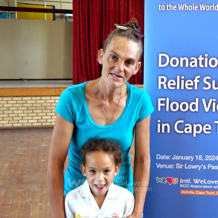 WeLoveU colaboró con la Municipalidad de Ciudad del Cabo para llevar a cabo esfuerzos de socorro de emergencia. Decidieron ayudar a los damnificados por las inundaciones en las zonas gravemente afectadas de Sir Lowry’s Pass y Macassar, visitando dichas regiones para evaluar la situación.