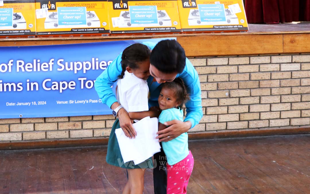 El 18 de enero, WeLoveU entregó suministros de socorro, incluyendo estufas a gas y balones de gas, a 69 familias afectadas por las inundaciones en los centros comunitarios de Sir Lowry’s Pass y Macassar.