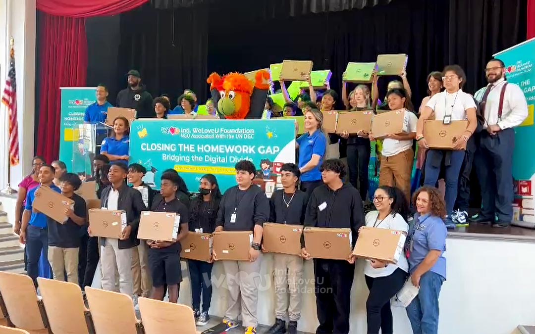 Sin embargo, en Estados Unidos, uno de cada cuatro adolescentes de hogares de bajos ingresos no tiene acceso a un dispositivo digital. Esto significa que muchos estudiantes no pueden disfrutar de un entorno educativo equitativo. Desde 2020, WeLoveU ha proporcionado a los niños dispositivos digitales a través del proyecto “Cerrando la Brecha de Tareas”.