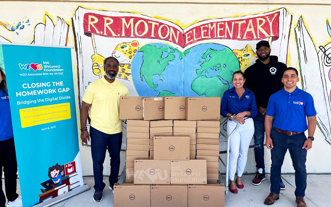 El 6 de abril, los miembros de WeLoveU en Miami, EE.UU., donaron 225 computadoras portátiles a estudiantes de tres escuelas primarias e intermedias a través de las Escuelas Públicas del Condado de Miami-Dade en Florida.