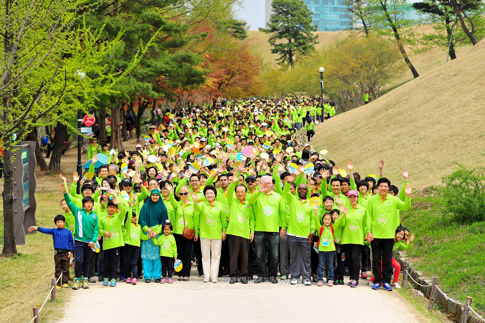 Se reunieron cerca de 12.000 miembros de la Fundación WeLoveU que viven en Seúl. La presidenta Zahng Gil-jah, el Patrocinador Principal Lee Soon-jae (actor), miembros del Cuerpo Diplomático de Seúl como la embajadora Margaret Clarke-Kwesie de Ghana, el embajador Carlos Victor Boungou de Gabón, el embajador Mohamed Ali Nafti de Túnez, el jefe adjunto de la misión Raja Ram Bartaula de Nepal, y el Consejero Harry A.C. Van Woerden de la embajada de Países Bajos como jefe de la NFIA (Agencia de Inversión Extranjera de Países Bajos); y Seo Young-bae, jefe del Consejo Coreano de IUCN; Kim Hee-sung, director general de Estrellas Verdes; Shin Yong-woo, director general de la Asociación de Albergues Juveniles de Corea; y Yi Bae-geun, presidente de KAPCAN (Red de la Asociasión Coreana para la Prevención del Abuso Infantil) también participaron en la caminata.