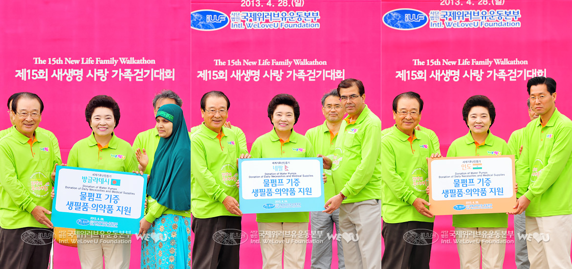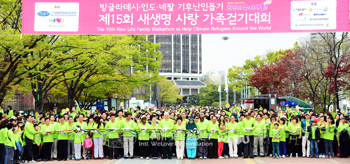 Los miembros de la Fundación Internacional WeLoveU, que no pasan por alto las preocupaciones de los vecinos globales, toman la delantera en ayudar a los refugiados climáticos en Bangladesh, India y Nepal, este año. El 28 de abril, la 15ta. Caminata Familiar Nueva Vida se llevó a cabo en el Parque Olímpico de Seúl bajo el auspicio de la Fundación Internacional WeLoveU en cooperación con el Ministerio de Salud y Bienestar, la Ciudad de Seúl, el Consejo Coreano IUCN, la Dirección de Cooperación de Energía de Corea, Estrellas Verdes, Daejayon, AIESEC y la Asociación de Albergues Juveniles de Corea.