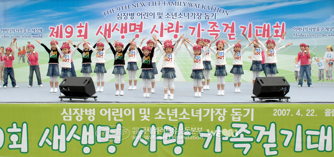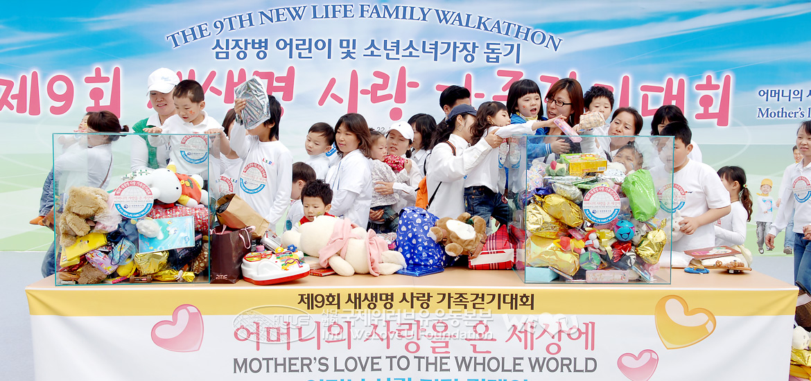 La Caminata Familiar Nueva Vida se ha llevado a cabo con el fin de entregar nueva vida y esperanza a los hogares sin padres y a los niños que sufren de enfermedades cardíacas y enfermedades raras. Ya que la caminata se ha realizado año tras año, su ayuda se extendió; no solo apoyaron a los niños coreanos sino incluso a los niños vietnamitas con enfermedades cardíacas. Especialmente, la 9.ª caminata entregó amor a los niños de seis países: Ghana, República Democrática del Congo, Perú, Brasil, Mongolia y China.