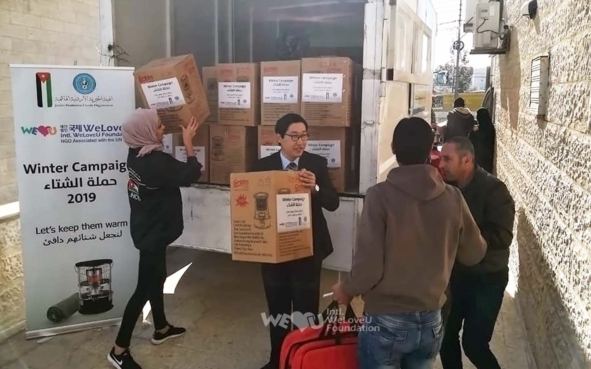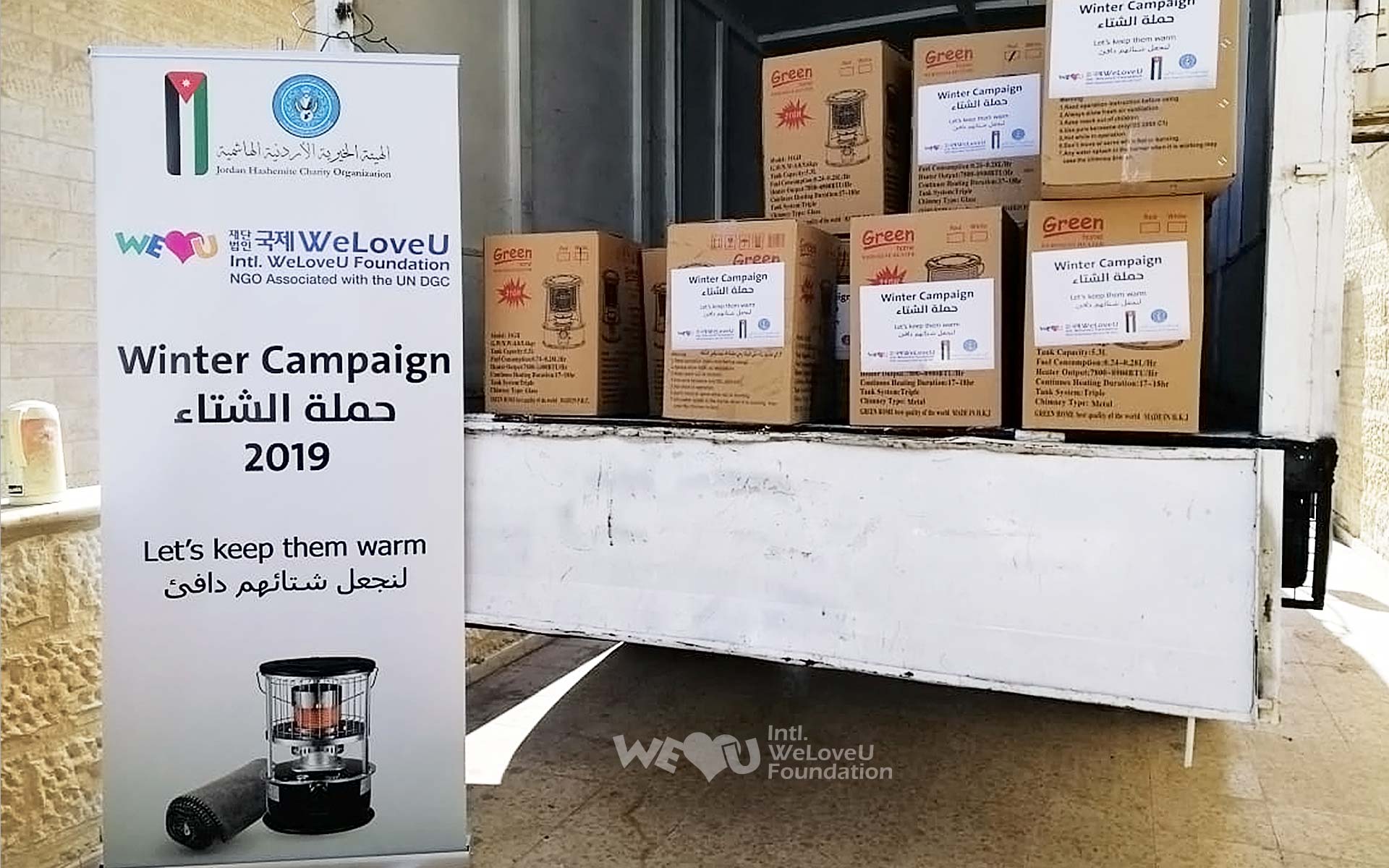 On November 27, WeLoveU donated 20,000 USD to JHCO for Jordanian neighbors to have a warm winter, and JHCO prepared goods with the donated fund. On December 18, winter clothing donation ceremony was held in Aqraba Charitable Society in Amman the capital city. WeLoveU branch manager in Jordan and a JHCO official offered one oil stove and two blankets to each of 83 Syrian refugee households and 55 vulnerable households in Amman.