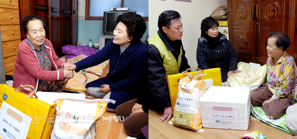 이날 회원들을 통해 김치를 전달 받은 최유미 (82. 서울 중랑구 신내동) 할머니는 혼자 살면서 찾아오는 사람도 없는데 이렇게 와서 위로해주는 회원들이 모두 아들 같고 딸 같다며 끝내 눈물을 훔쳤다. 위러브유에서 전한 김치는 그저 한 철 나는 반찬이 아니라 외로운 이웃들의 마음을 채우는 따뜻한 정이 아니었을까. 경제 위기로 속까지 시린 겨울, 국내외의 소외층과 함께하는 위러브유의 사랑 나누기 운동은 지속적으로 전개되어 이날처럼 추운 줄 모르고 겨울을 나게 하는 힘이 될 것이다.