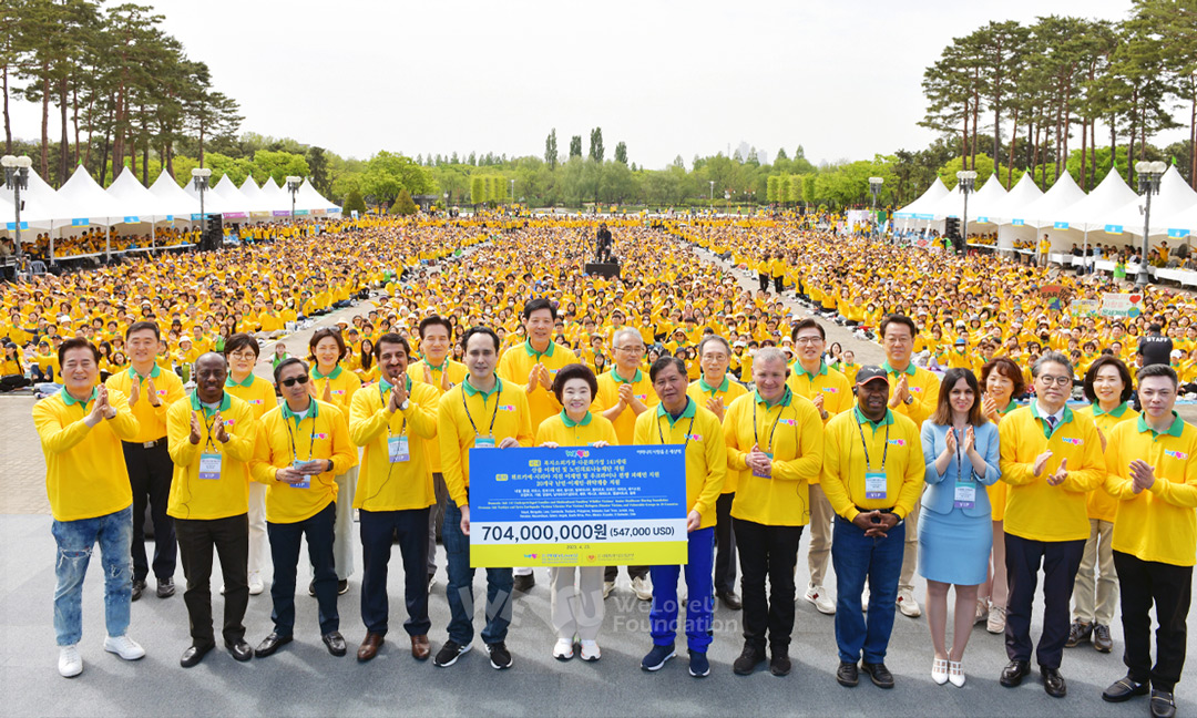 이번 걷기대회를 통해 위러브유는 튀르키예·시리아 지진 이재민과 우크라이나 전쟁 피해민을 비롯해 네팔, 라오스, 몽골, 캄보디아, 태국, 필리핀, 말레이시아, 동티모르, 요르단, 이라크, 파키스탄, 모잠비크, 가봉, 앙골라, 남아프리카공화국, 페루, 멕시코, 에콰도르, 엘살바도르, 칠레의 난민·이재민·취약계층까지 총 23개국의 이웃을 돕는다. 국내에도 산불 이재민 구호성금, 복지소외가정 및 다문화가정 141세대 의료·생계비를 지원하고 노인의료나눔재단에 3천만 원의 기금을 기탁하는 등 국내외에 총 7억 원 상당을 전한다. 장길자 회장이 주한 외교관 등에게 성금 기증판을 전달하는 것으로 1부 개회식을 마무리했다.