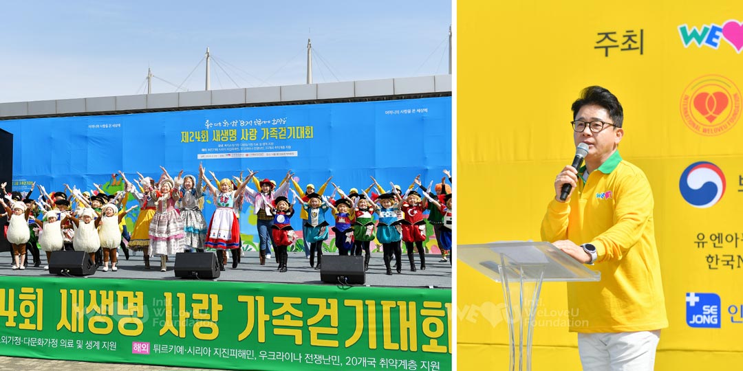 오전 10시경, 사회를 맡은 김병찬 아나운서가 재치 있는 입담으로 행사의 시작을 알렸다. 식전행사에서 새생명어린이합창단이 생기발랄한 율동으로 참가자들을 환영했다. 장길자 회장은 개회사에서, 튀르키예·시리아 지진 이재민 등 23개국 이웃을 돕는 걷기대회의 목적을 소개하며 “오늘 가족걷기대회를 통해, 인류는 ‘혼자’가 아닌 ‘함께’라는 메시지가 지구촌 이웃들에게 희망과 용기를 주는 응원으로 전해졌으면 한다. 걷기대회가 끝난 후에도 계속해서 어려운 이웃에게 관심과 응원을 보내자”고 말했다. 더불어 “함께하면 많은 것을 이룰 수 있다. 우리가 관심을 가지고 서로 도우며 응원함으로써 지구촌은 평화의 세계, 행복의 세계가 될 수 있을 것”이라고 위러브유의 비전을 고취했다.
