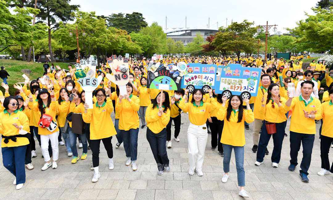 장길자 회장의 출발 선언으로 2부 걷기대회가 막을 올렸다. 마칭밴드의 힘찬 연주 속에 걸음을 뗀 참가자들은 난지연못을 지나 산책로를 따라 1.3킬로미터 가량의 코스를 걸었다. 코스 중간과 끝 지점에서는 청년 회원들이 특별 퍼포먼스로 걷기대회에 재미와 의미를 더했다. 일회용품 사용 줄이기, 분리배출, 절전, 나무 심기 등 지구를 위한 행동을 일상에서부터 실천하자는 메시지를 발랄한 춤과 노래로 표현해 큰 호응을 얻었다. 이날도 일회용품 대신 텀블러와 도시락을 챙겨 오고 대중교통을 이용하는 등 위러브유 클린액션 캠페인에 동참한 회원들은, 퍼포먼스 팀의 메시지에 공감하며 깨끗한 지구환경 보전을 위해 작은 것부터 실천하겠다는 의지를 다졌다.