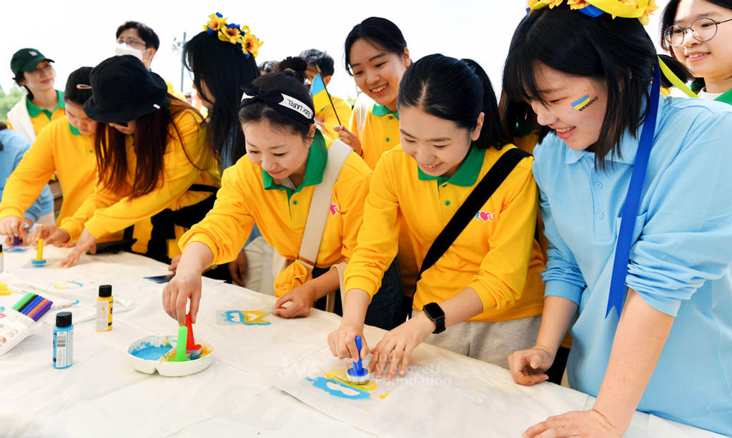 회원들은 아름다운 자연 속에 가족, 지인과 완연한 봄을 만끽하며 코스를 완주한 뒤 위러브유 소개 패널전시, 세계문화체험, 페이스페인팅, 포토존 등 평화광장에 마련된 부대행사에 참여했다. 세계문화체험 부스에서는 라오스, 앙골라, 에콰도르, 엘살바도르 등 6개국의 특산품 소개와 전통놀이 체험 등 다채로운 프로그램을 제공, 언어와 문화의 간극을 줄이고 지구촌 가족의 정을 나눴다. 지나던 시민들도 관심을 보이며 봉사자들의 설명에 귀를 기울였다. 라오스 부스에서는 라오스 유학생들이 민속춤 플래시몹을 선보이기도 했다. 포토존에도 소중한 추억을 남기려는 이들의 줄이 늘어서는 등 어른, 아이 할 것 없이 모두 즐거운 오후를 보냈다.