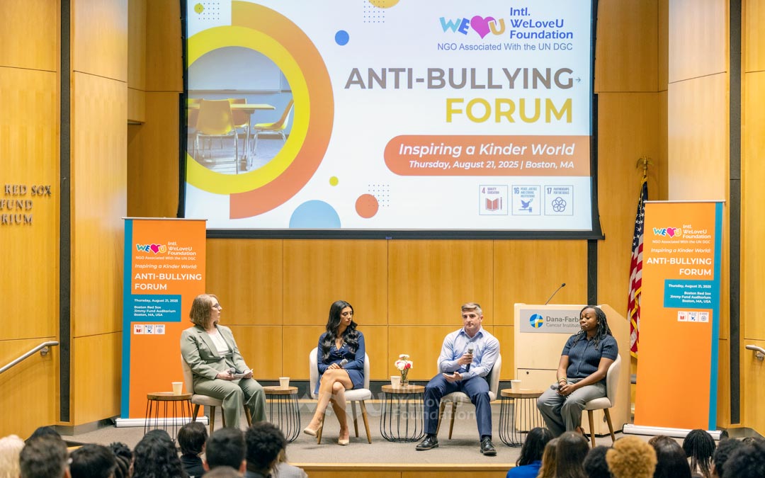 8월 21일, 위러브유는 매사추세츠주 보스턴, 다나파버 암연구소 내 보스턴 레드삭스 지미 펀드 강당에서 ‘더 따뜻한 세상을 위한 영감’ 프로젝트의 일환으로 ‘학교폭력 예방 포럼’을 진행했습니다. 학생과 학부모, 교사, 사회복지사, 위러브유 회원 등 115명이 참석해 학교폭력의 원인과 영향, 건강한 학교생활을 위한 공동의 역할에 대해 논의했습니다.
