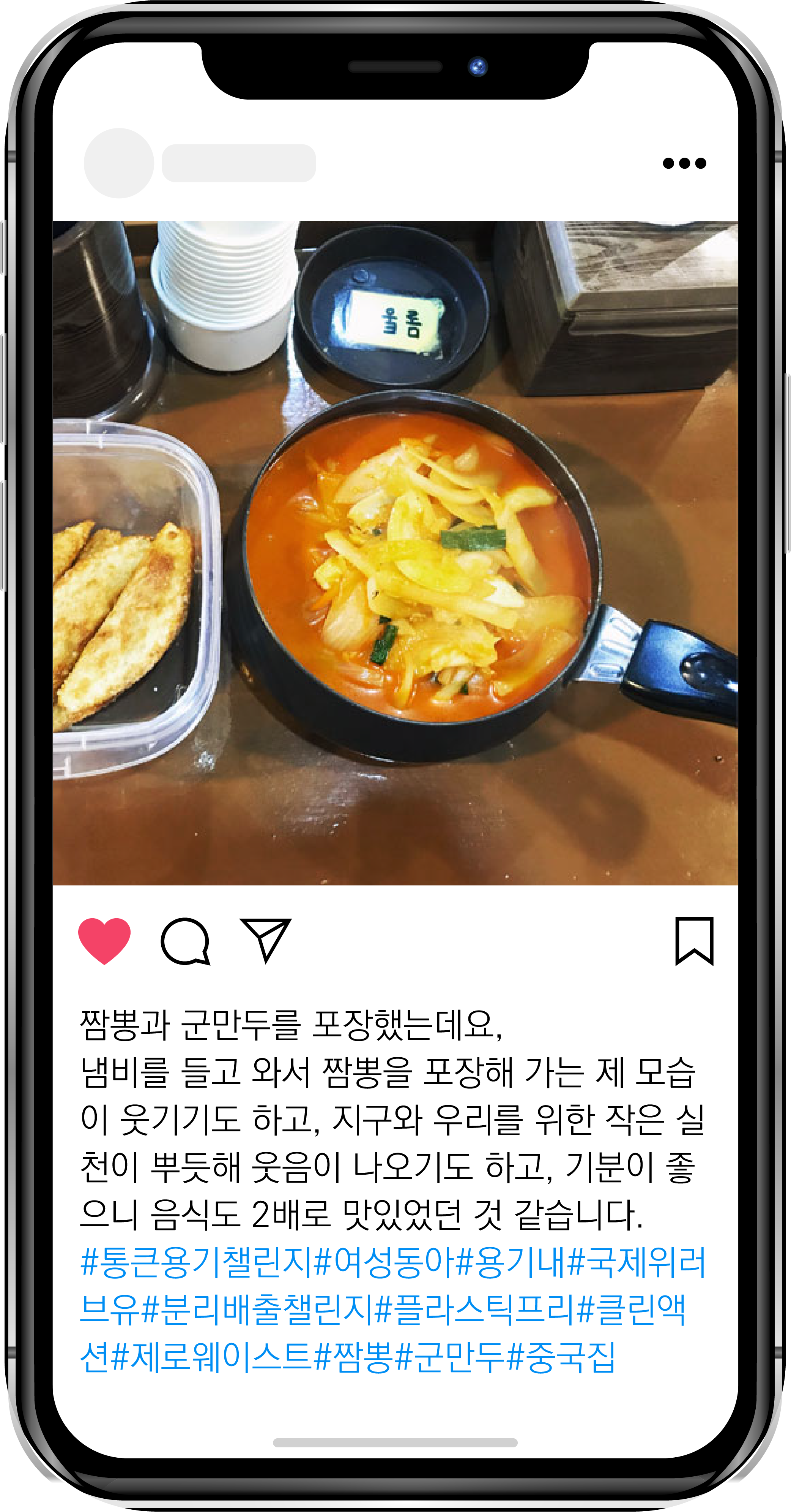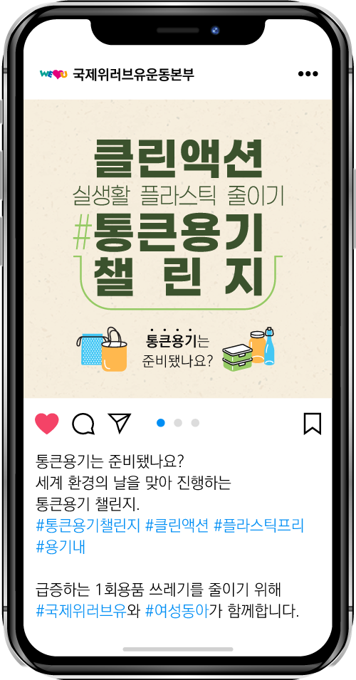 1회용품 이제는 NO! 국제위러브유운동본부와 여성동아가 급증하는 1회용품 쓰레기를 줄이기 위해 #통큰용기챌린지를 진행합니다.