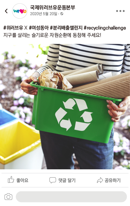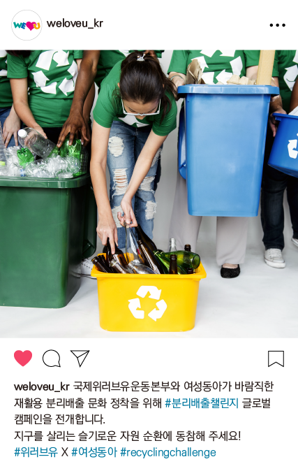 위러브유는 여성동아와 함께 #분리배출챌린지 글로벌 캠페인을 전개합니다.