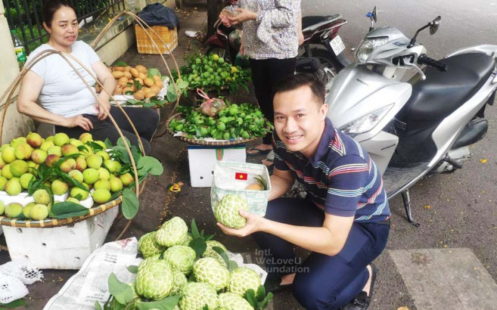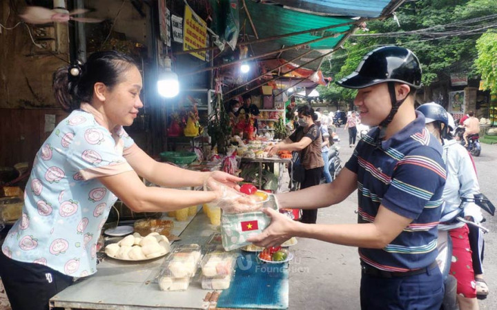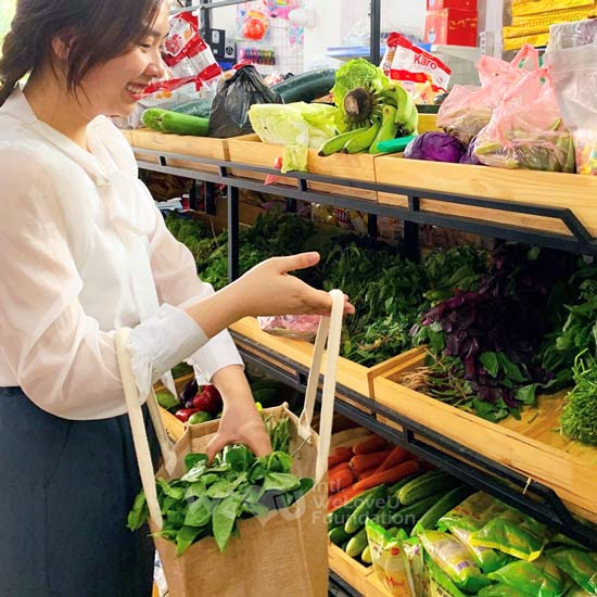고향에 갈 때 이 가방에 장을 봅니다. 소박하지만 튼튼하고 환경 친화적인 가방입니다. 플라스틱 폐기물이 넘치고 기온이 올라가자 하노이시에서 환경 캠페인 일환으로 제작한 것입니다. 오늘도 이 가방을 이용해 야채를 구입했습니다.