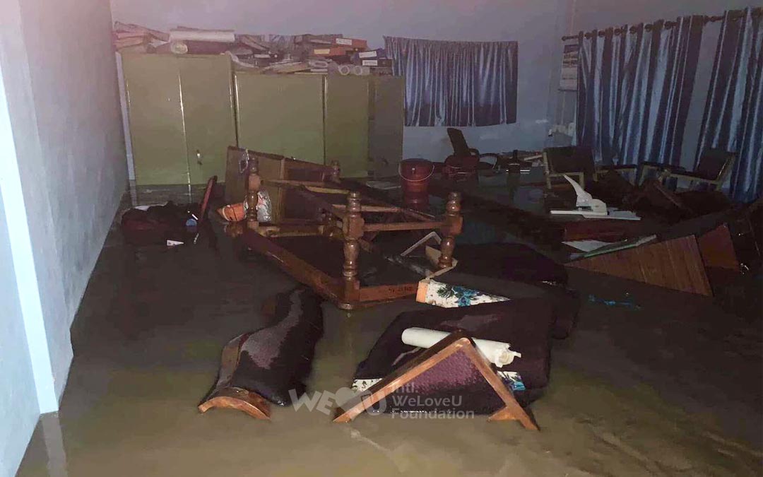 위러브유는 학교의 안타까운 소식을 듣고, 교장을 만나 수해복구 지원에 대해 논의했습니다. 교장은 다른 것보다 정수시설을 지원해 주길 요청했습니다. 교내 정수시설이 고장 나 아이들이 물을 마실 수 없는 상태였기 때문입니다.