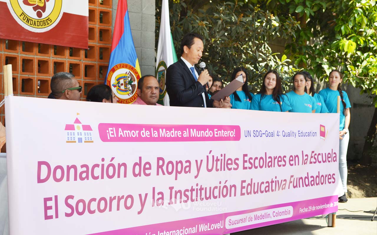 11월 29일, 푼다도레스 학교 운동장에서 위러브유의 기증식이 열렸다. 행사에는 루이스 기예르모 갈로프레 교장과 소코로·푼다도레스 학교의 지원 대상 학생, 학부모를 비롯해 위러브유 회원 20명이 참석했다. 오스카 마우리시오 레스트레포 메데인 시교육감과 교육청 관계자도 함께했다.