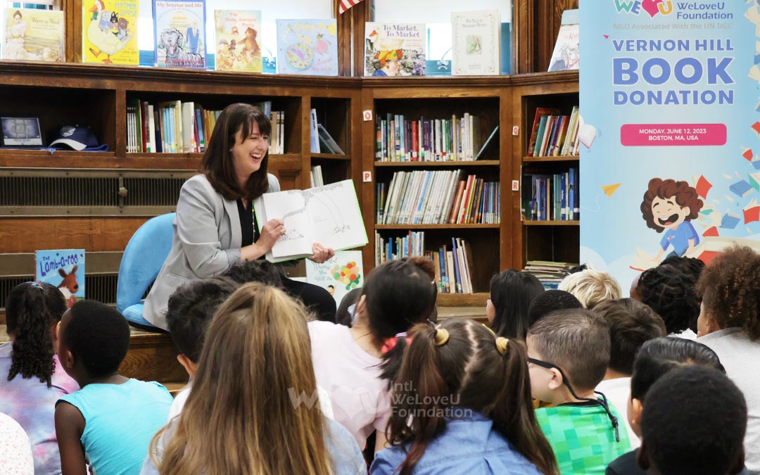 이곳은 미국 매사추세츠주 우스터의 버넌힐 초등학교 도서관입니다. 위러브유 회원들이 천 권이 넘는 책을 진열해 놓고 학생들을 반갑게 맞이합니다.