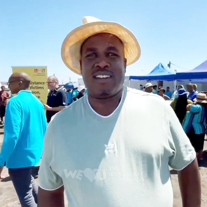 위러브유는 이재민들이 비축해 두고 먹을 수 있는 쌀과 옥수숫가루, 각종 통조림과 소스 등의 식료품 세트를 서둘러 준비했습니다. 이후 2월 3일, 케이프타운 두눈 5구역의 올드택시 승강장에서 위러브유가 화재 이재민 64가정에 식료품 세트를 전달했습니다.