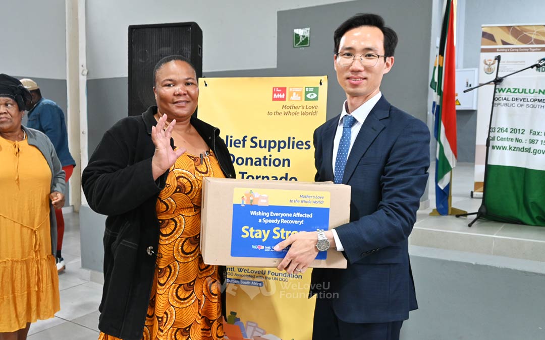 11월 7일에는 콰줄루나탈주의 이난다, 뉴타운 A 커뮤니티홀에서 콰줄루나탈주 토네이도·화재 이재민 구호품 전달식이 열렸습니다.